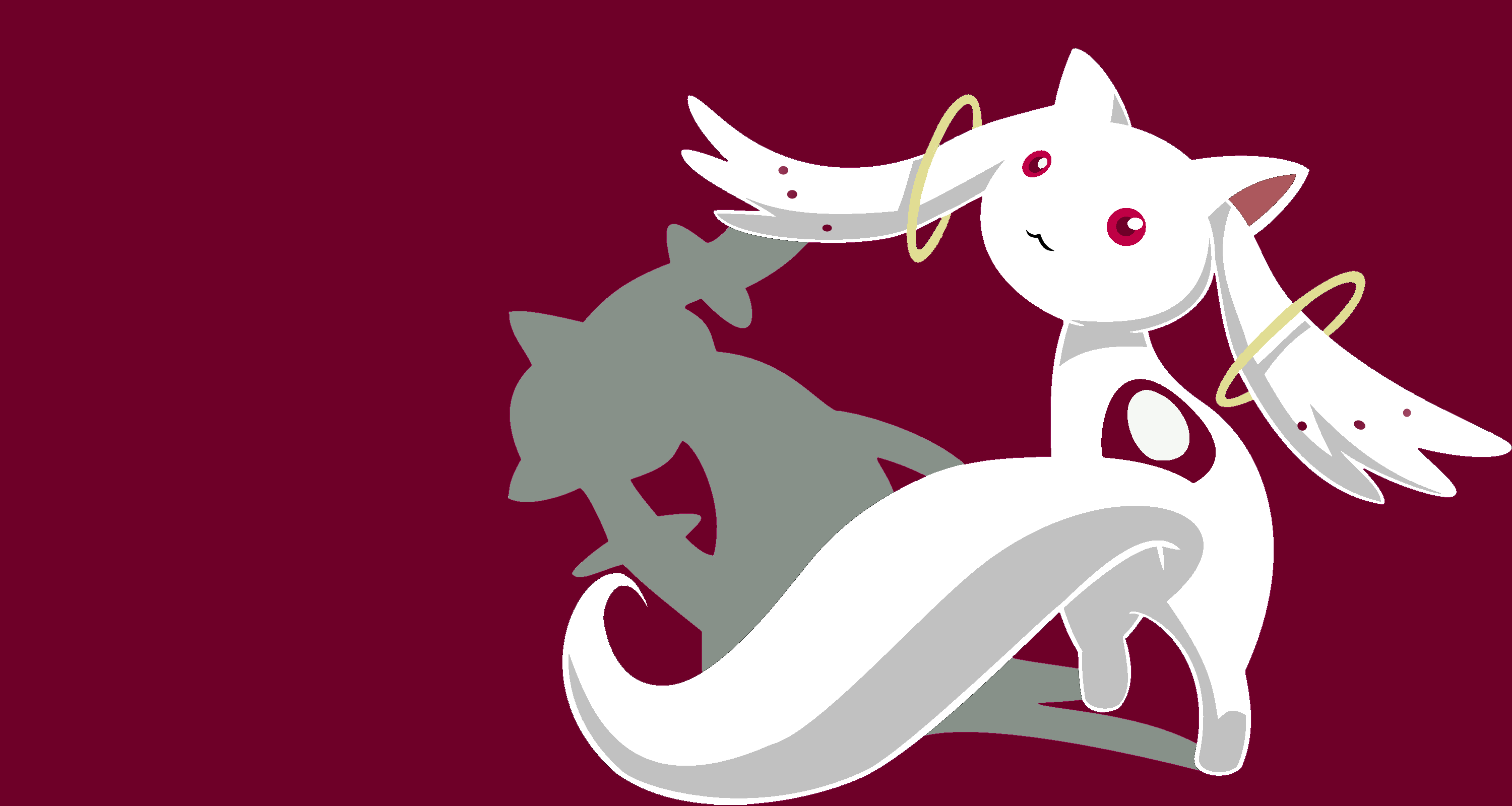 Description: A white cat sitting on top of a white horse on a red background with a gold halo around its neck.