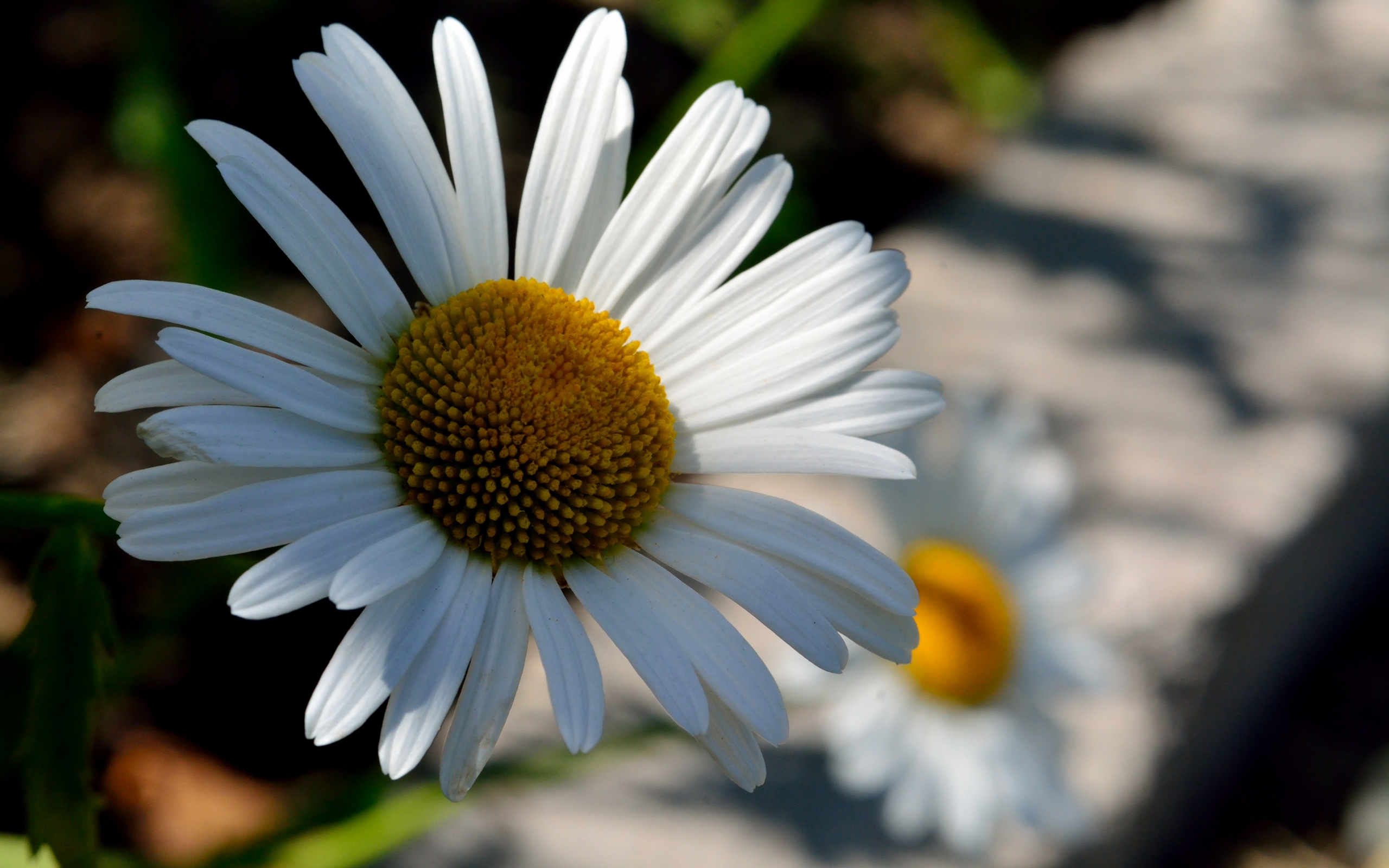 Description: A close up of a white flower with yellow center and a green center in the middle of the flower.