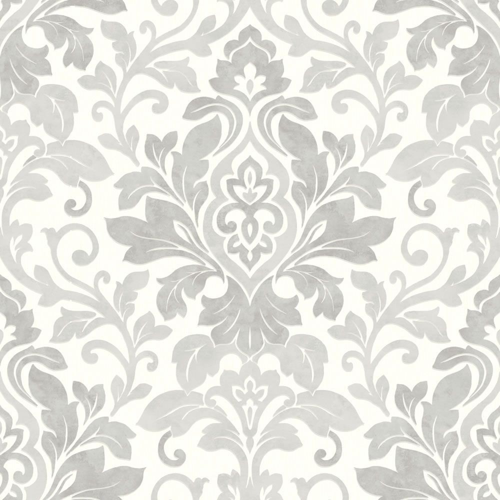 Description: A white and gray wallpaper with a floral design on it's side.