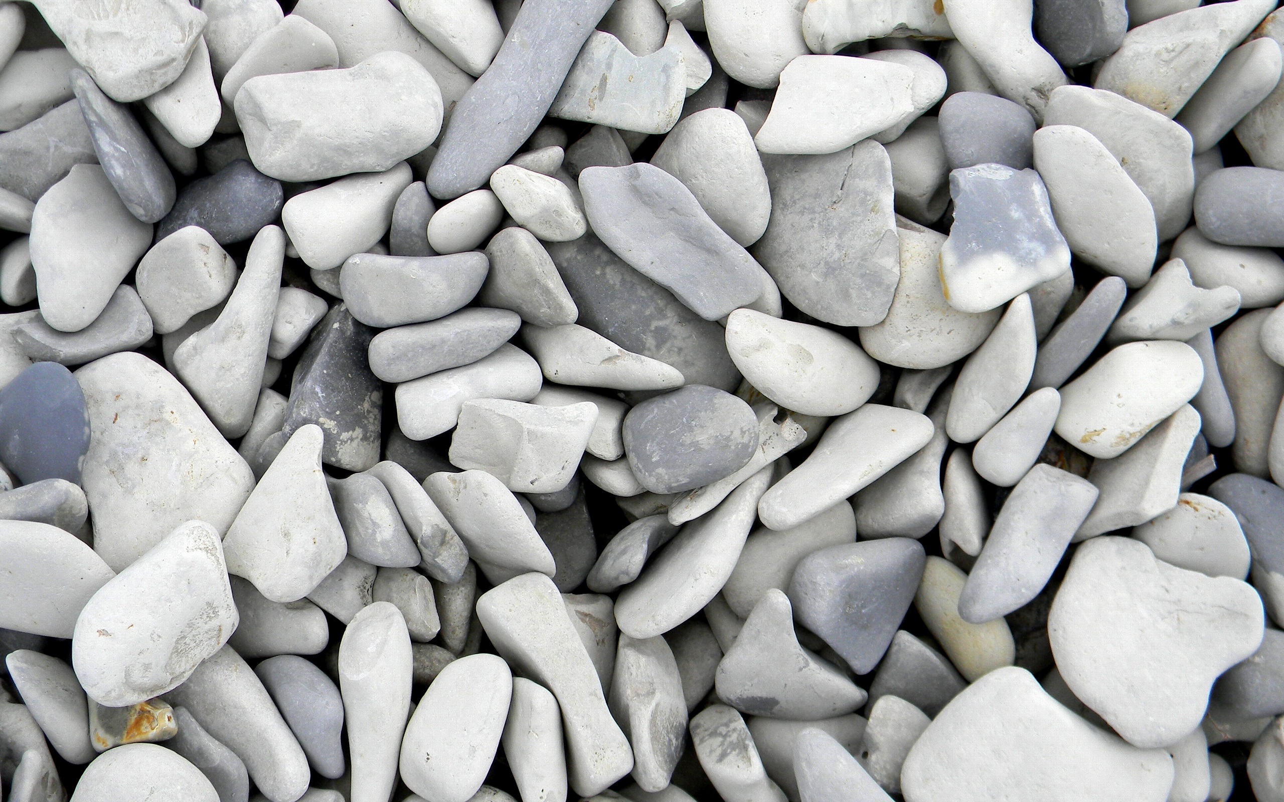 Description: A pile of white and grey rocks with a brown spot on top of them and a black spot on the top of the rocks.