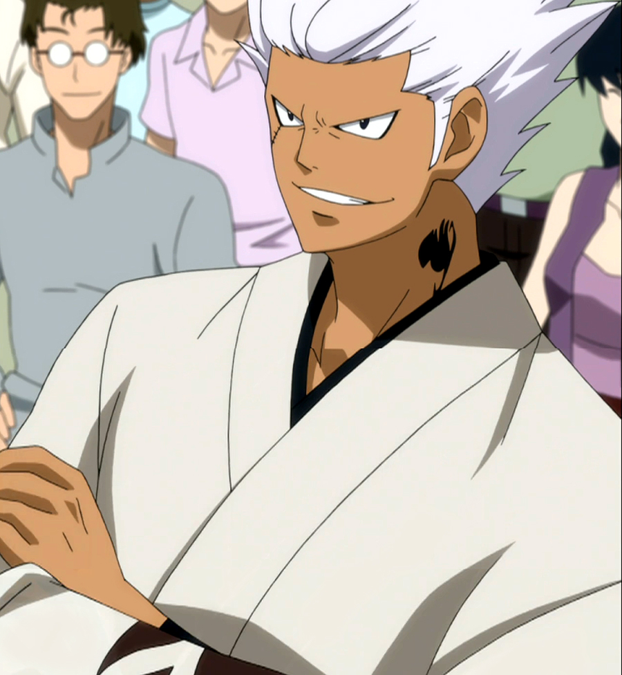 Description: A man with white hair and a white shirt is standing in front of a group of people with his hands on his hips.