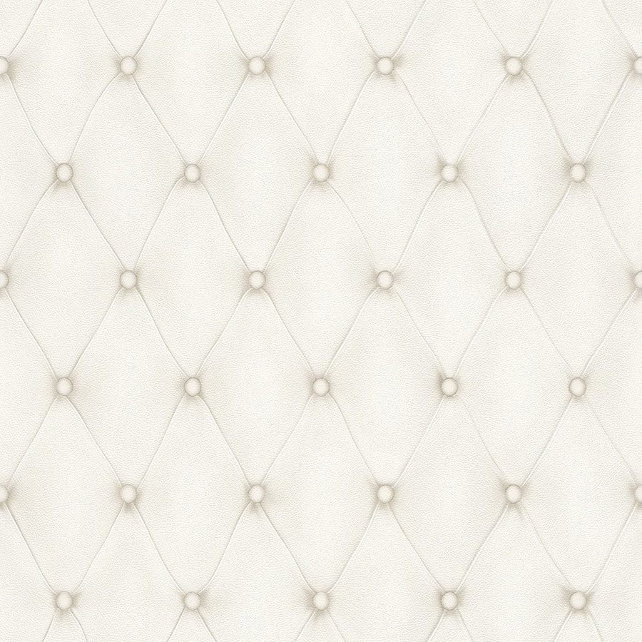 Description: A white leather upholstered with a diamond pattern on it's back side.