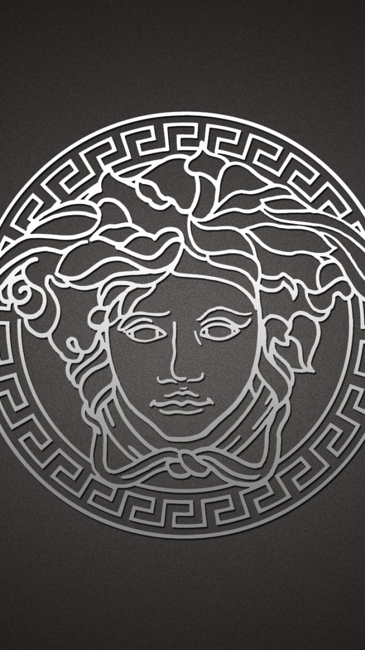 Description: A white medallion with a face of a woman with a crown of hair and a snake on it's head.