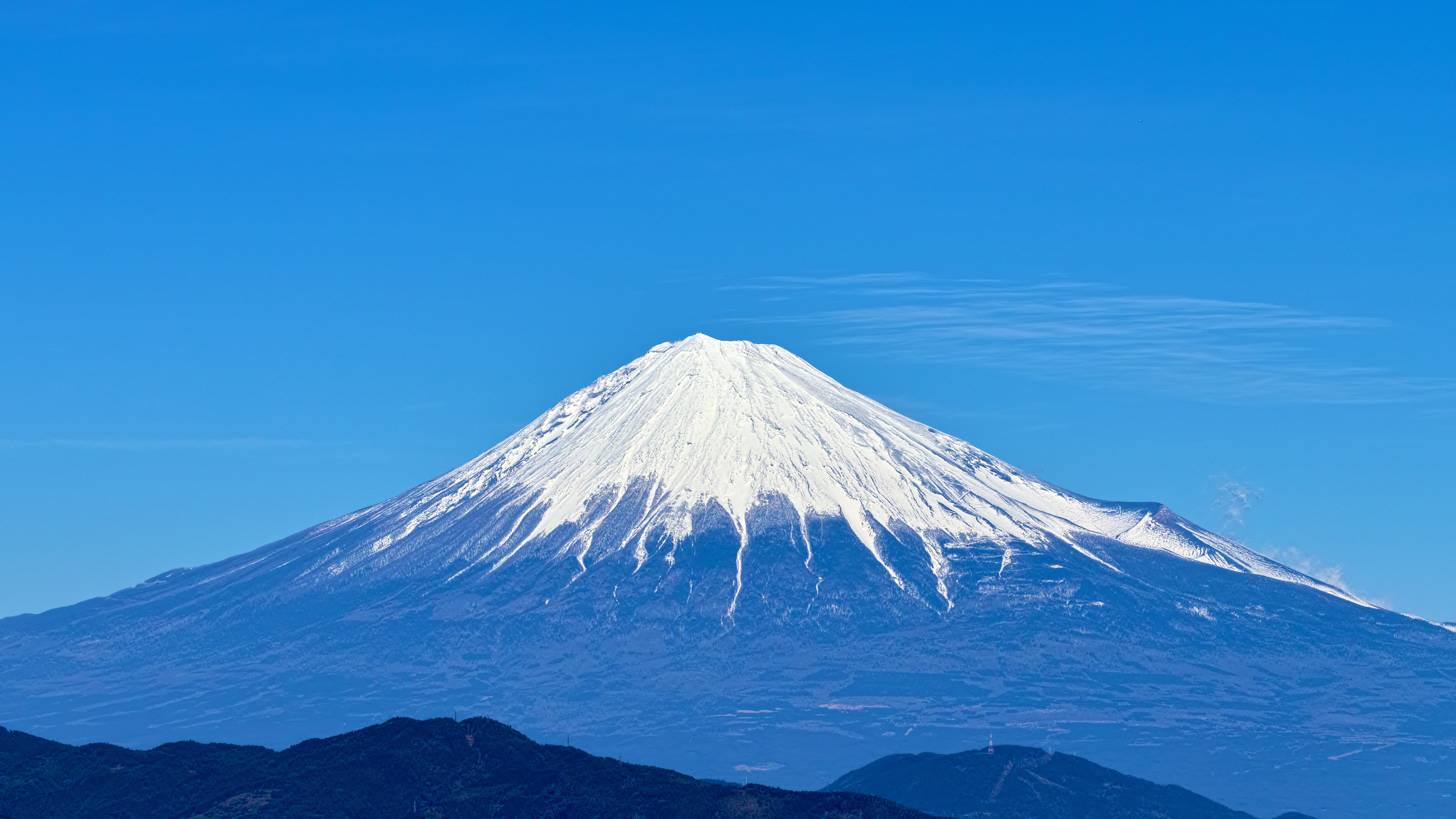 Description: A large white mountain with a blue sky in the background and a few clouds in the sky above it.