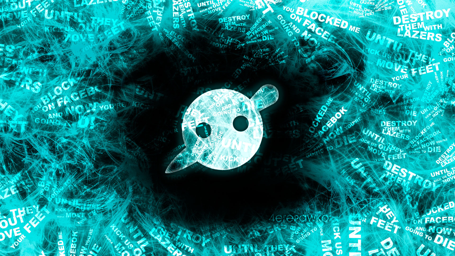 Description: A white object with a black hole in it surrounded by words that read destroy the world and a black hole in the middle.