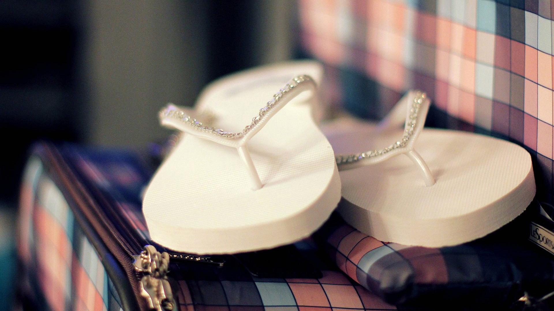 Description: A pair of white shoes sitting on top of a purse next to a purse bag and a purse strap.