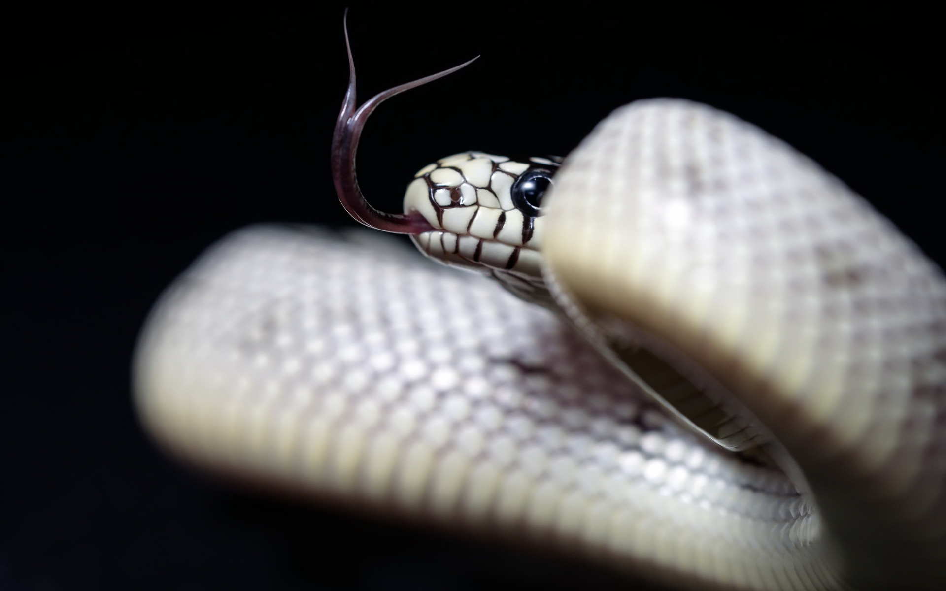 Description: A white snake with a black background and a black background with a black background and a white snake with a black background and a black background with a black background.