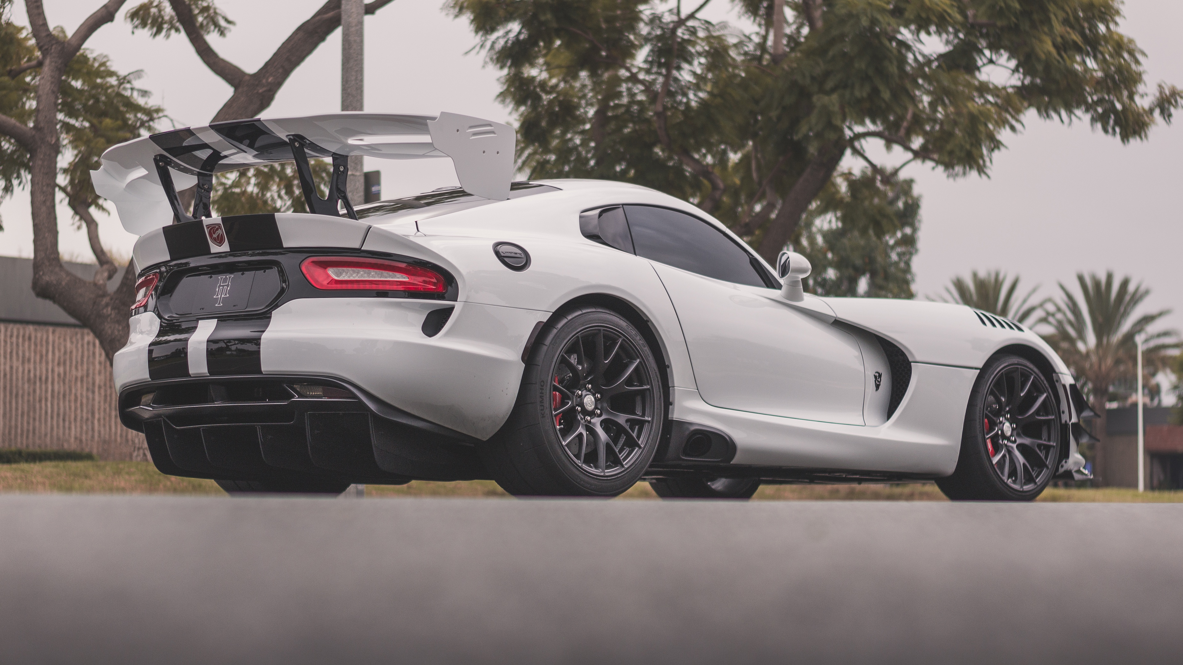 Description: A white sports car parked on the side of the road with its doors open and the roof down on a cloudy day.