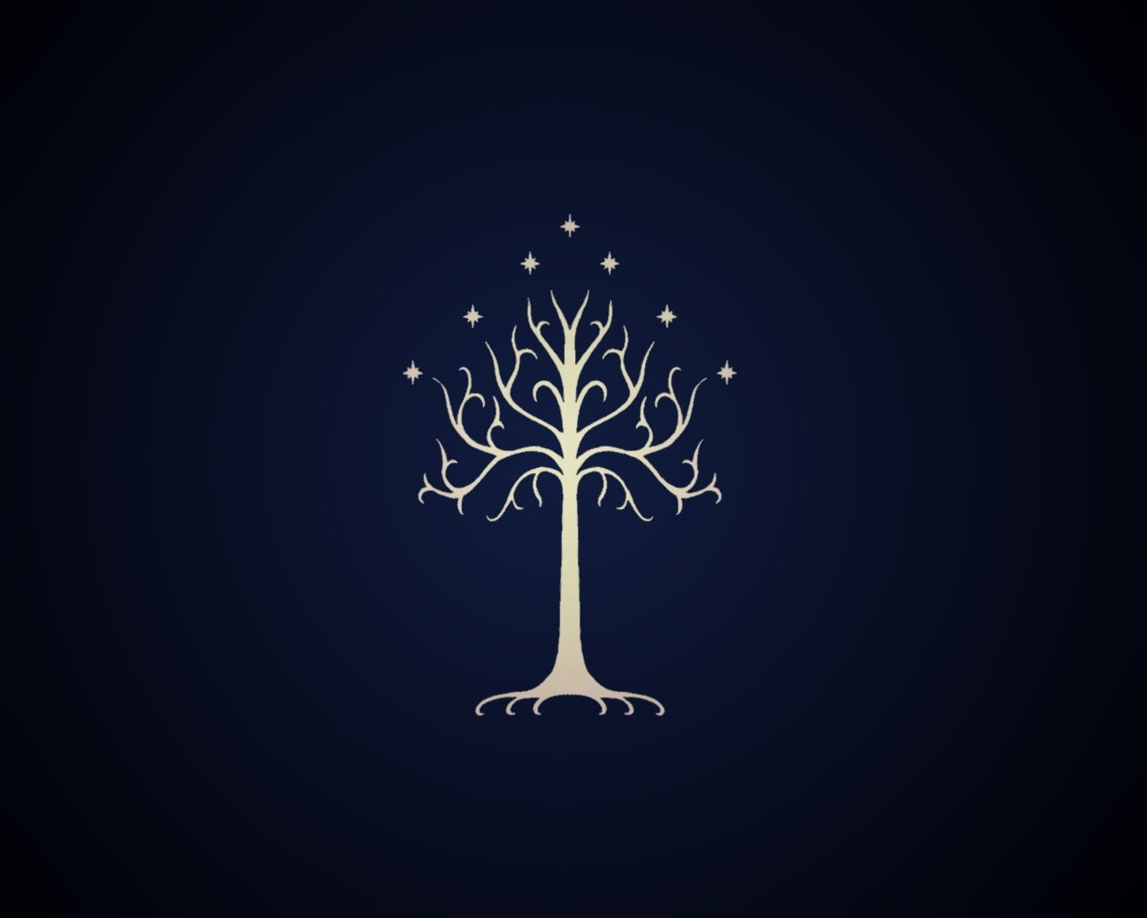Description: A white tree with stars on it on a blue background with a black background and a white outline of a tree.