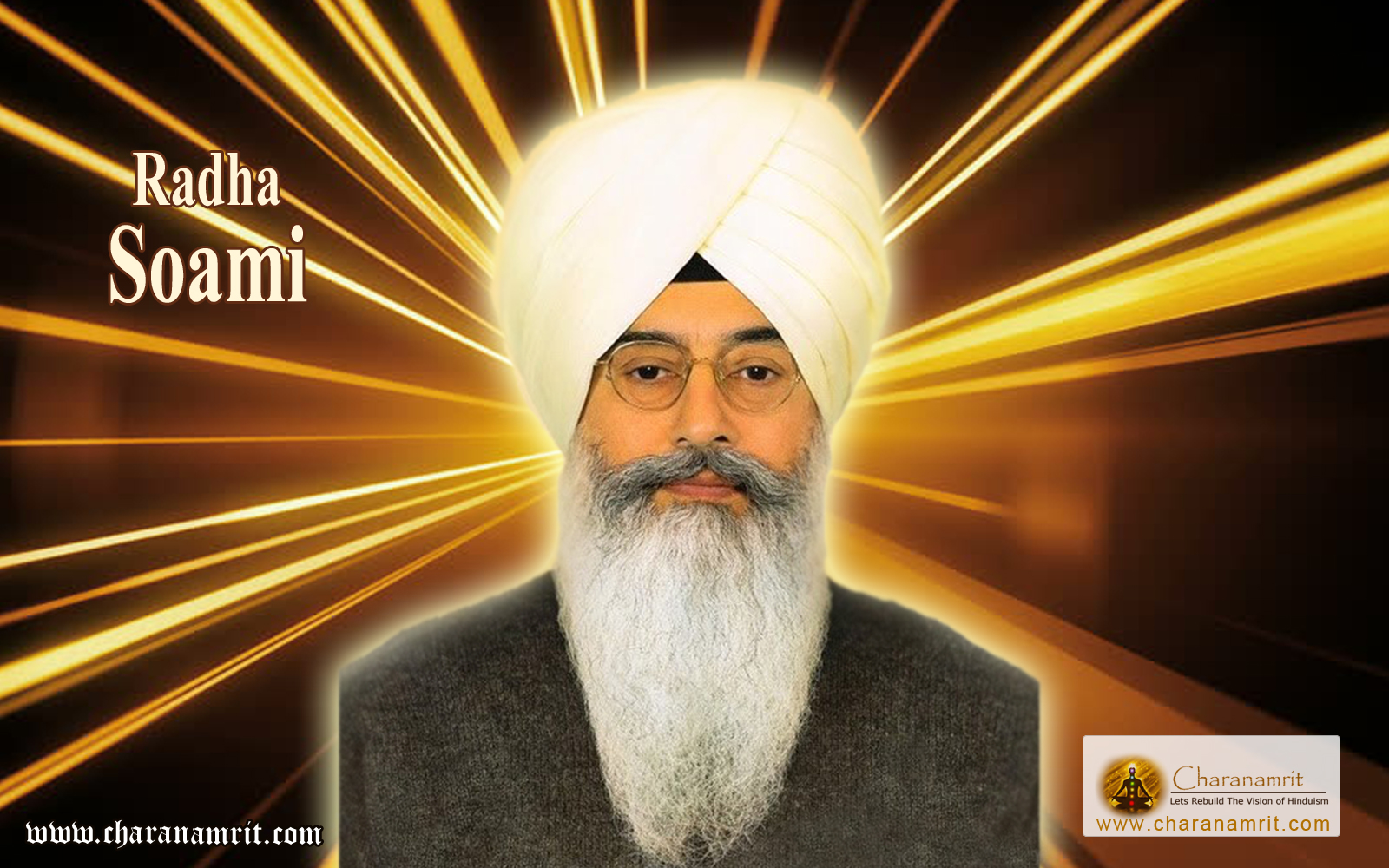 Description: A man with a white turban and a beard and a black shirt and a yellow background with a light.