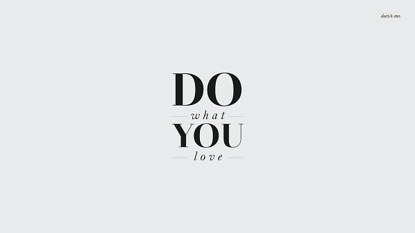 Description: A white wall with a black and white quote on it that says do what you love on it.