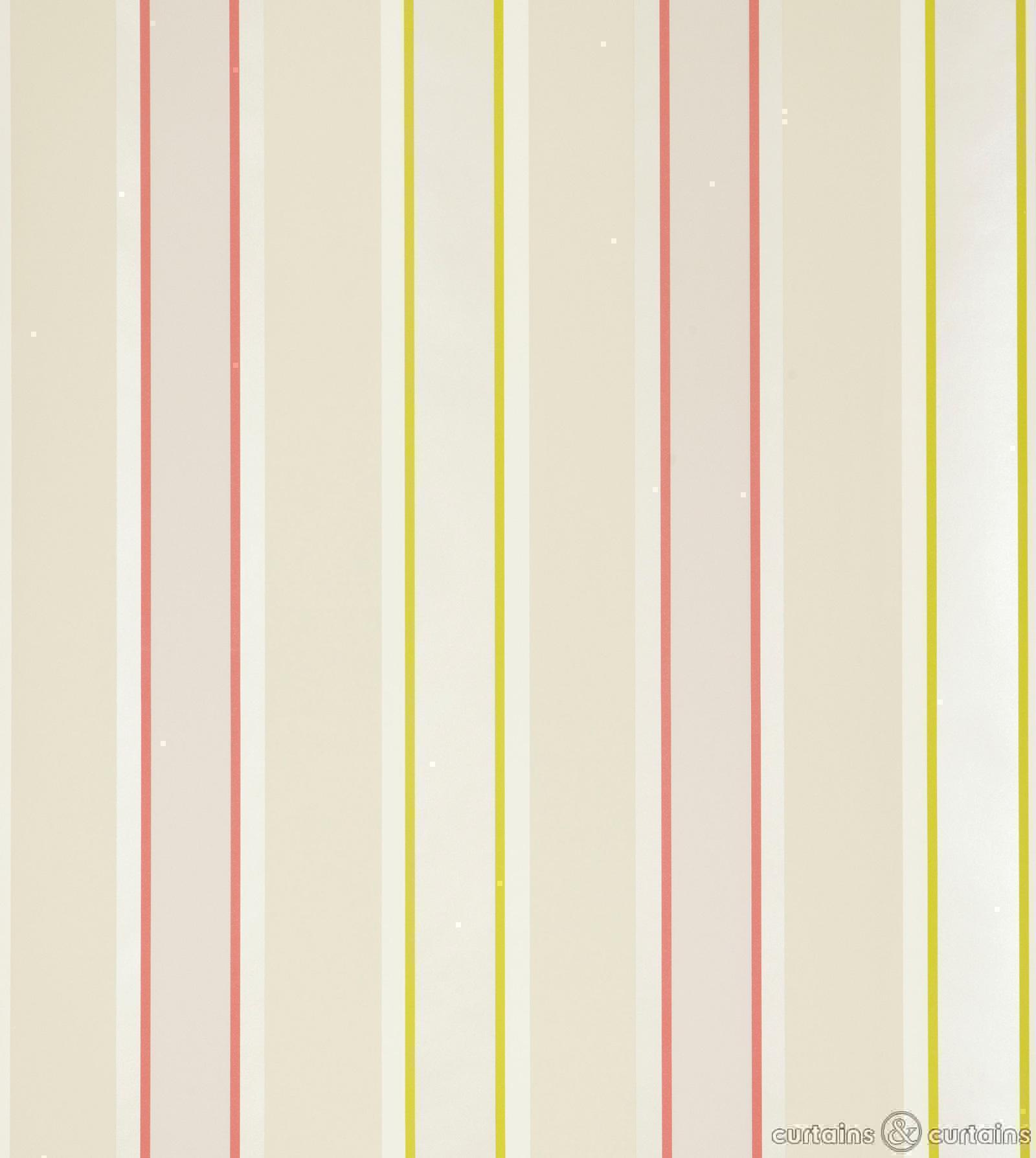 Description: A white wall with a red and yellow striped pattern on it and a white vase with a red and yellow striped pattern on it.