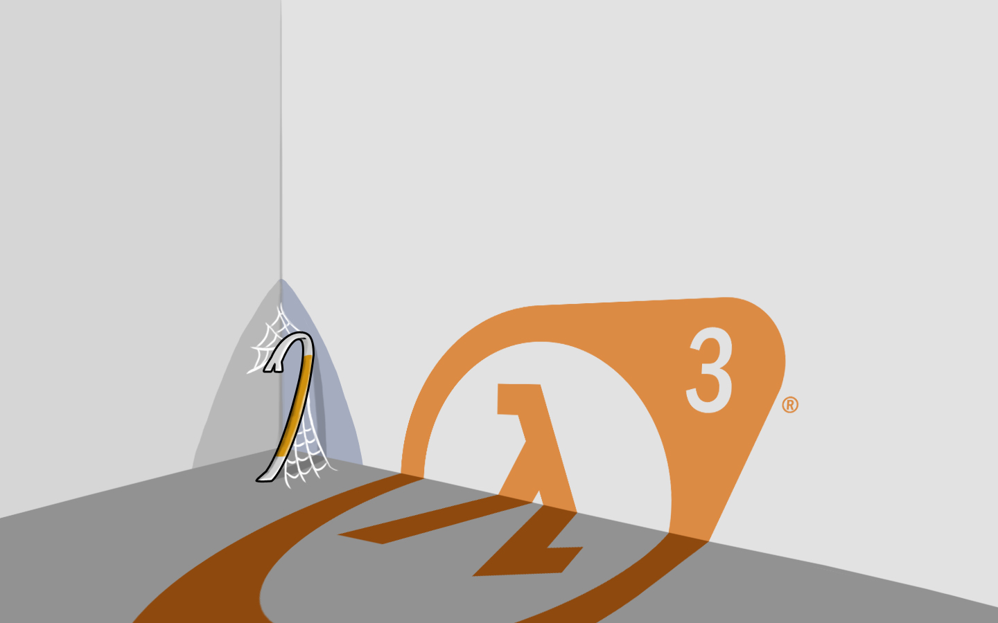 Description: A white wall with a sign and a orange arrow on it and a white wall with a sign and a yellow arrow.