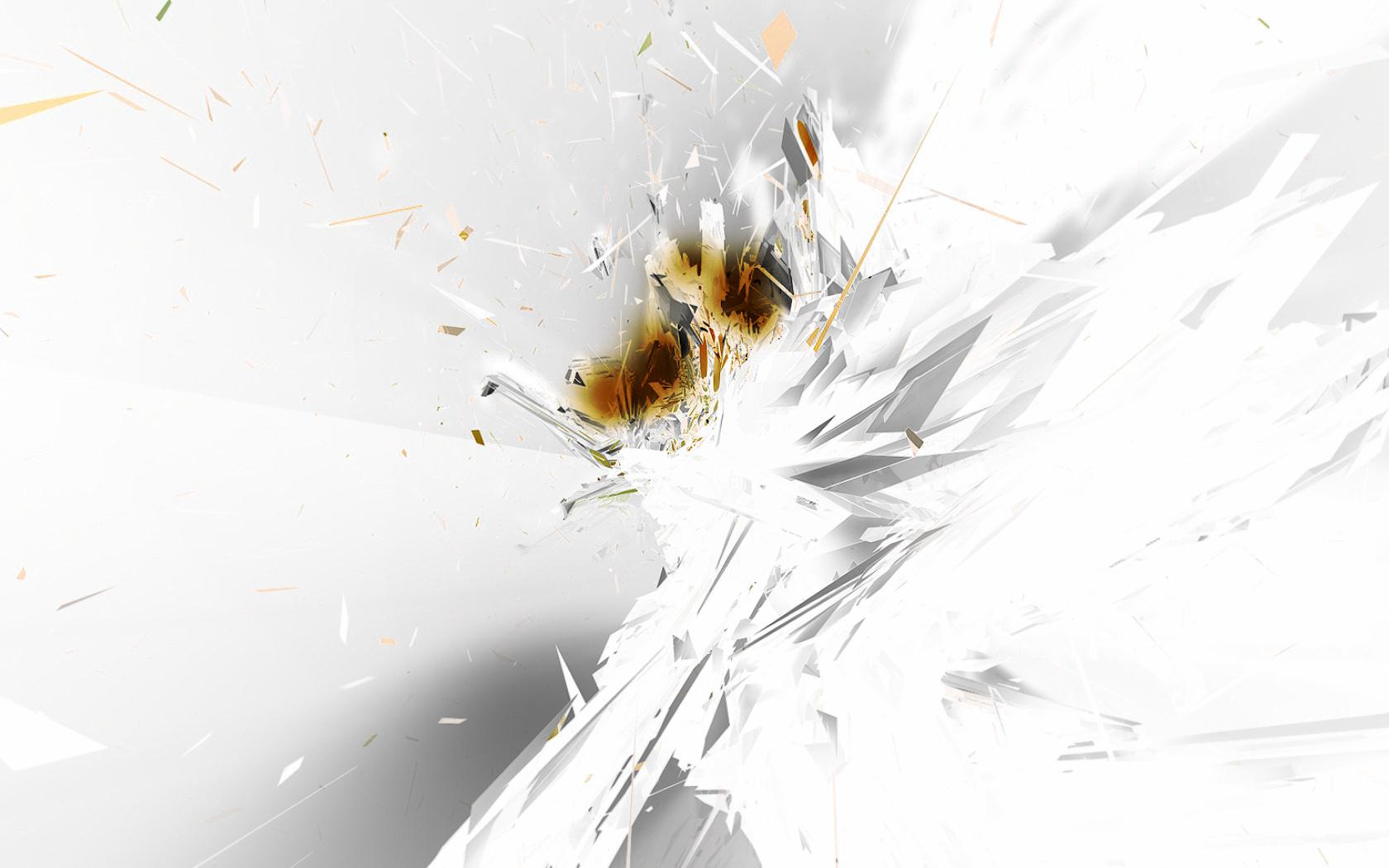 Description: A white and yellow abstract background with a bunch of small objects in the middle of it and a few smaller pieces of yellow and white material.