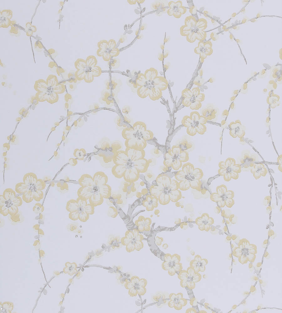 Description: A white and yellow wallpaper with flowers on it's side and a white background with a white and yellow flower pattern.