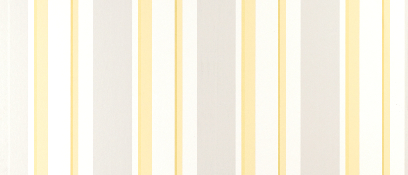 Description: A white and yellow striped wallpaper with a white vase on the side of it and a white vase on the other side.
