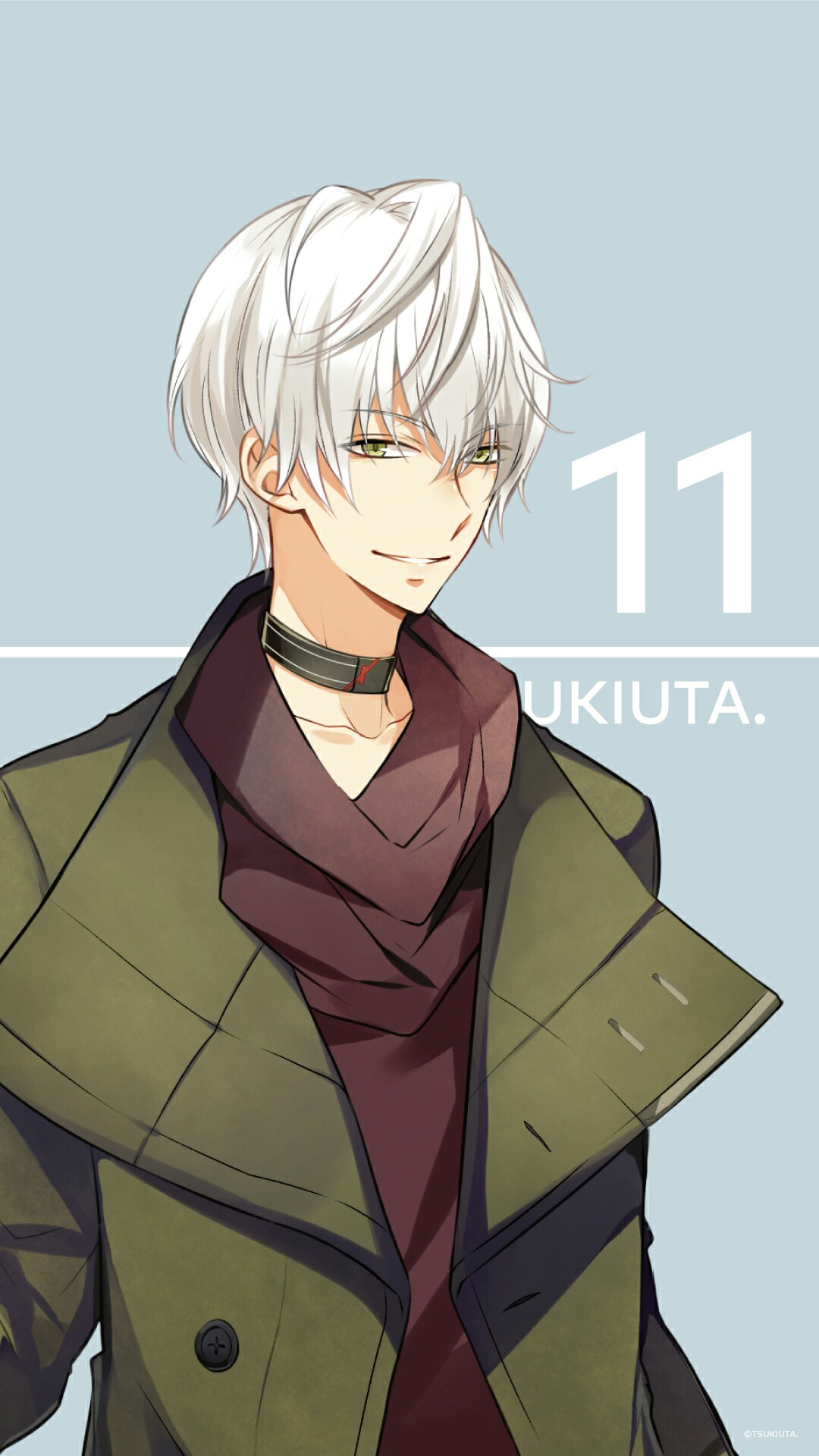 Description: A man with white hair and a green jacket on a blue background with a white background and a white background.