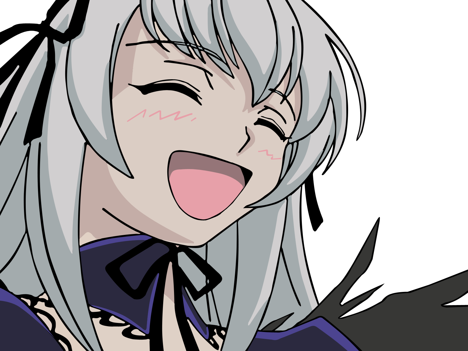 Description: A woman with white hair and a black shirt is making a funny face with her tongue out and her eyes closed.
