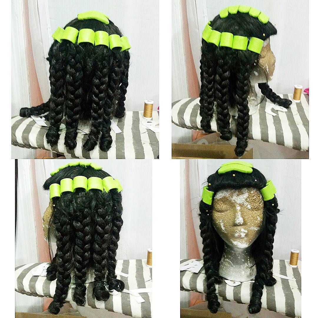 Description: A series of photos of a wig with hair in it's center and a wig with a lot of hair on top.
