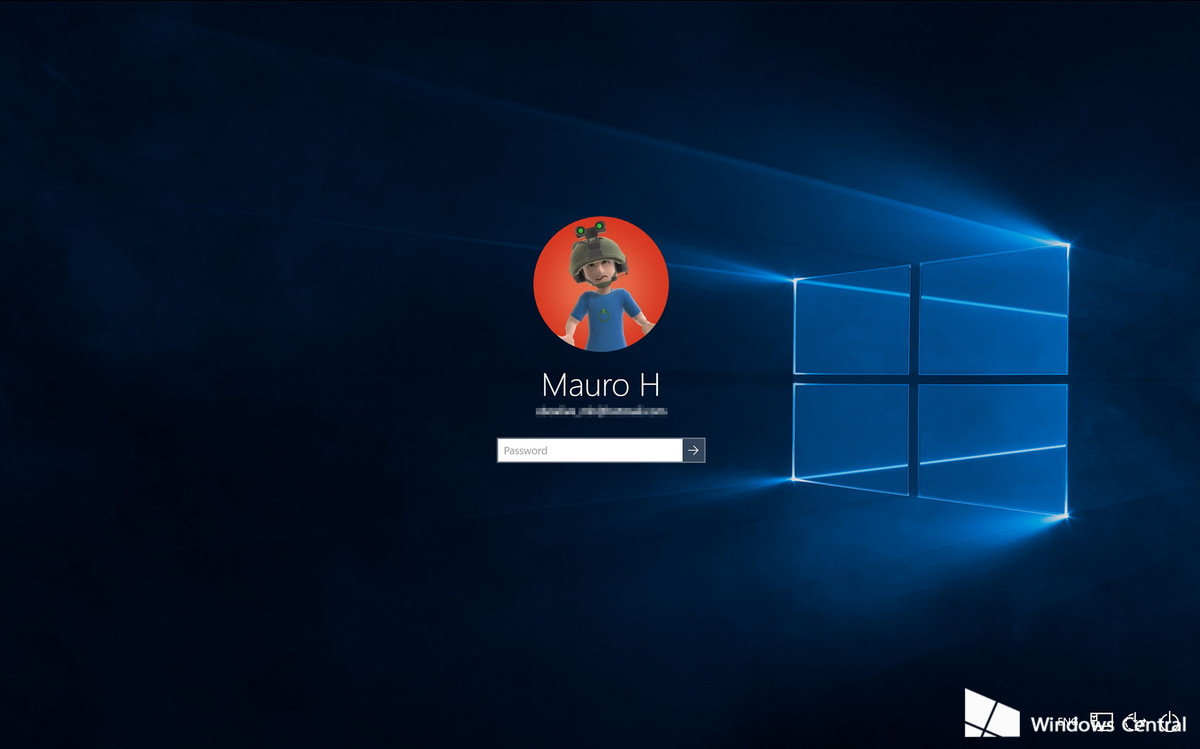 Description: A windows 10 start screen with a blue background and a red circle above it that says mario h on the screen.