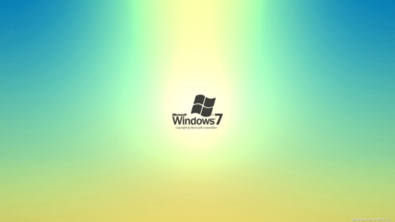 Description: A windows 7 wallpaper with a blue sky background and a yellow and green background with a window 7 logo.
