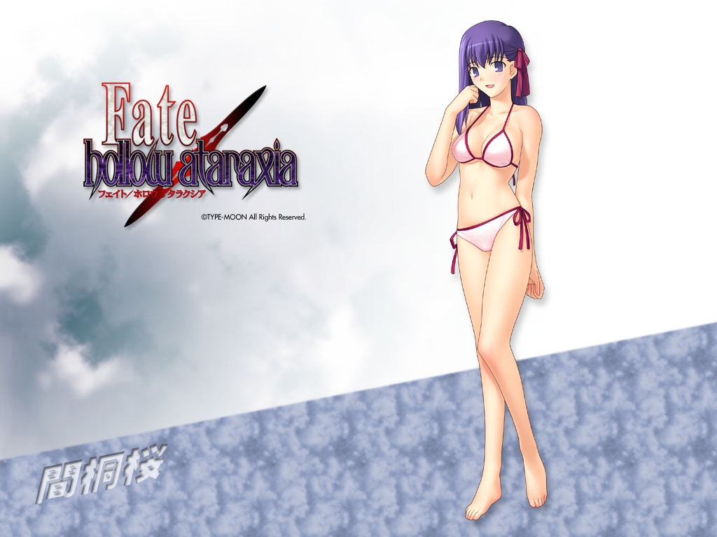 Description: A woman in a bikini is talking on a cell phone while standing in front of a cloudy sky with a knife.