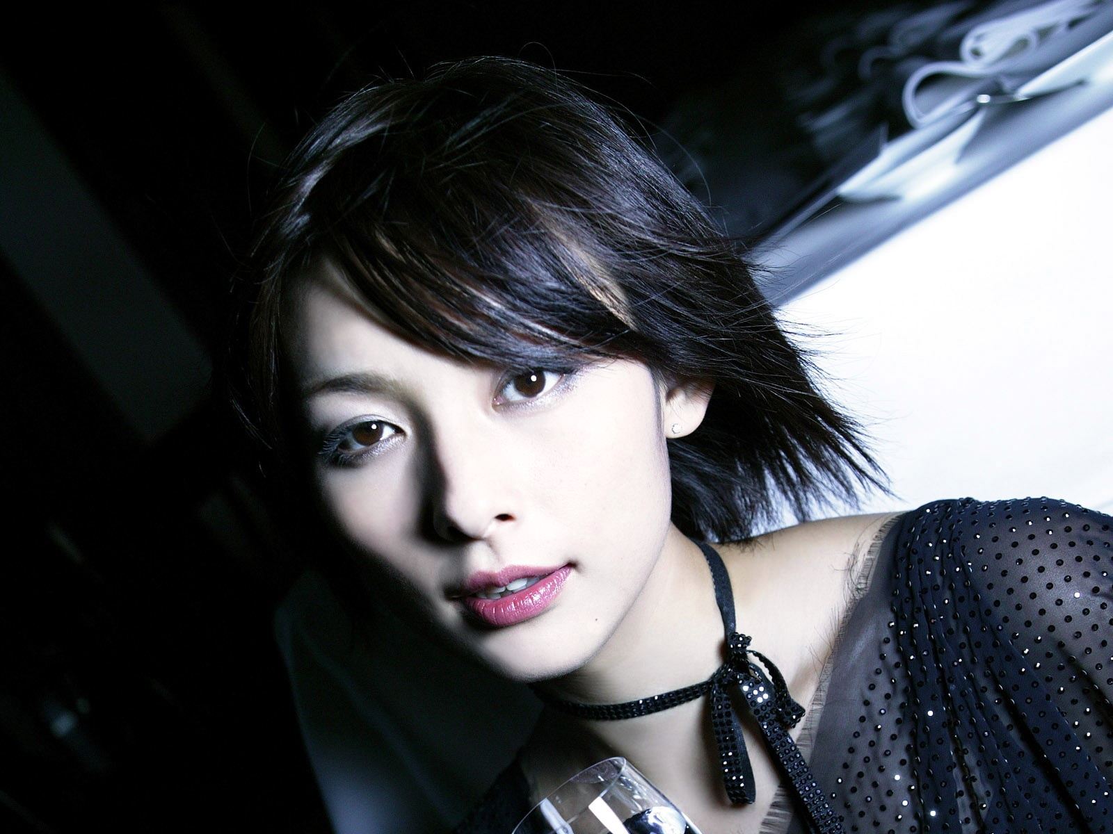 Description: A woman with a black choker holding a cell phone in her hand and looking at the camera with a serious look on her face.