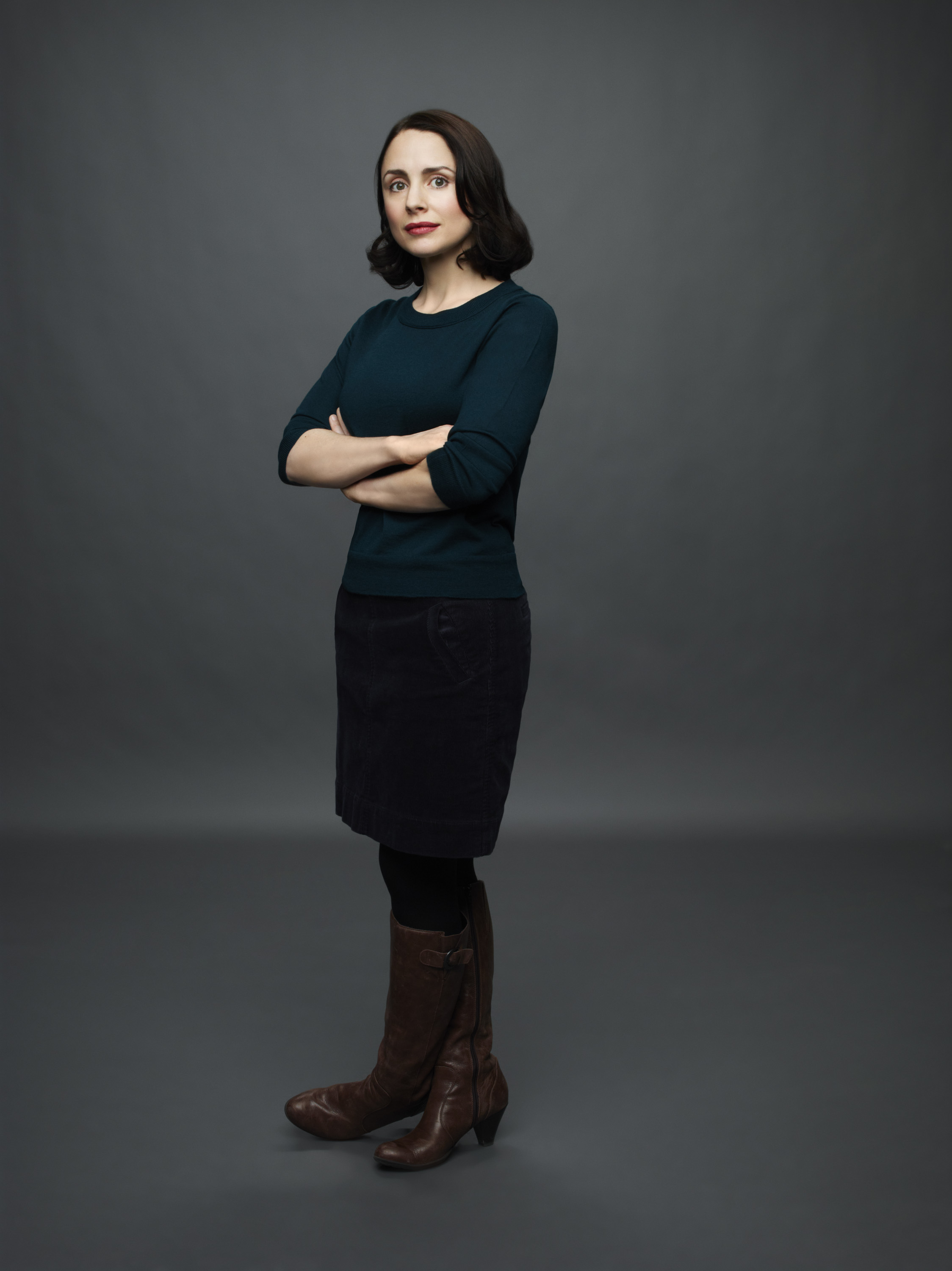 Description: A woman in a black dress and brown boots posing for a picture with her arms crossed and her arms crossed.