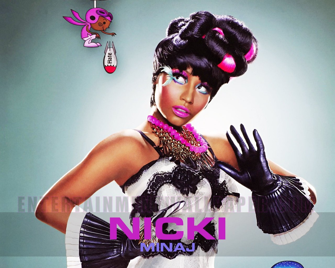 Description: A woman with a black dress and pink accessories on her head and hands on her hips.
