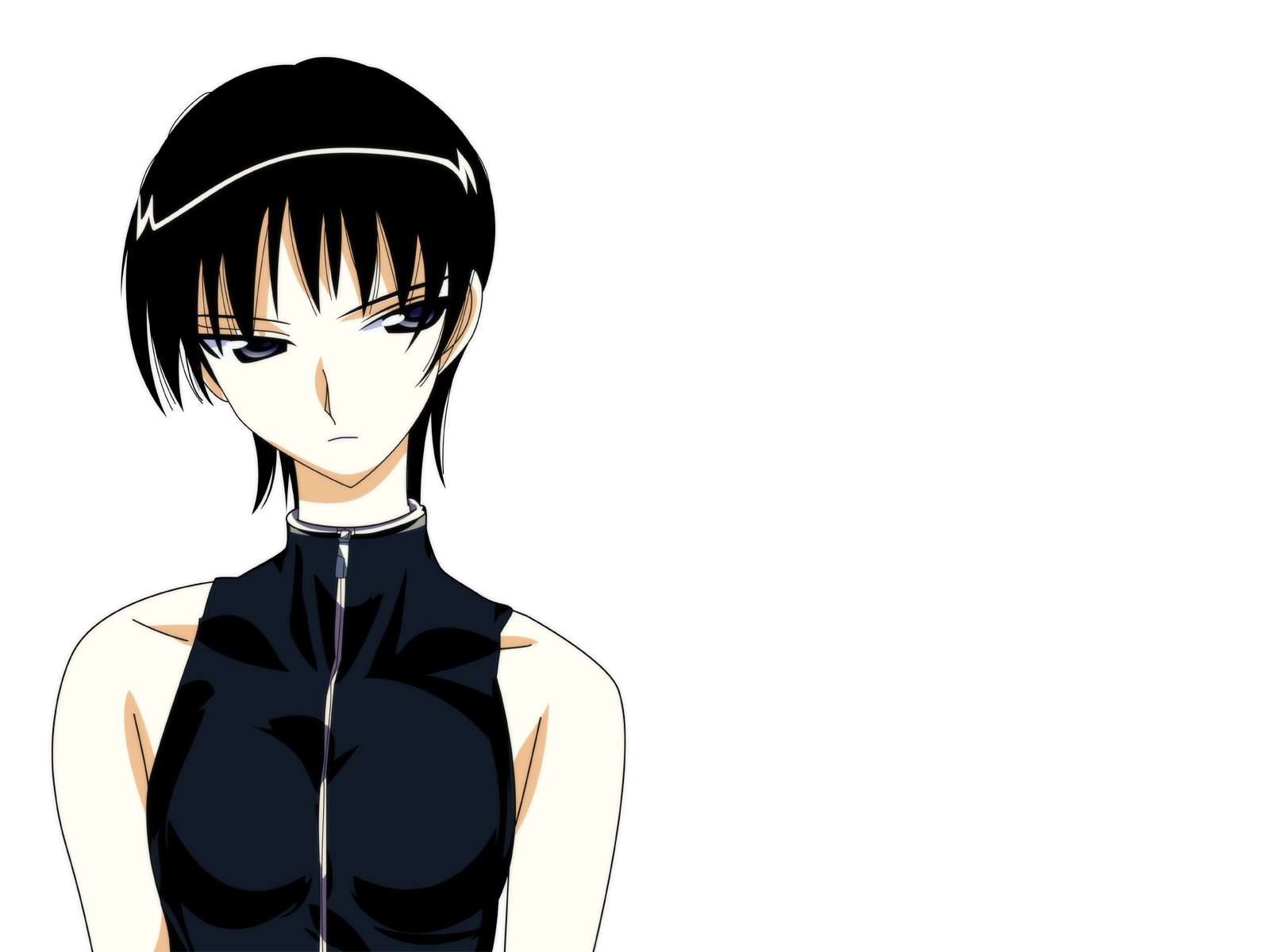 Description: A woman in a black dress with a ponytail and a black top on her head and a white background.