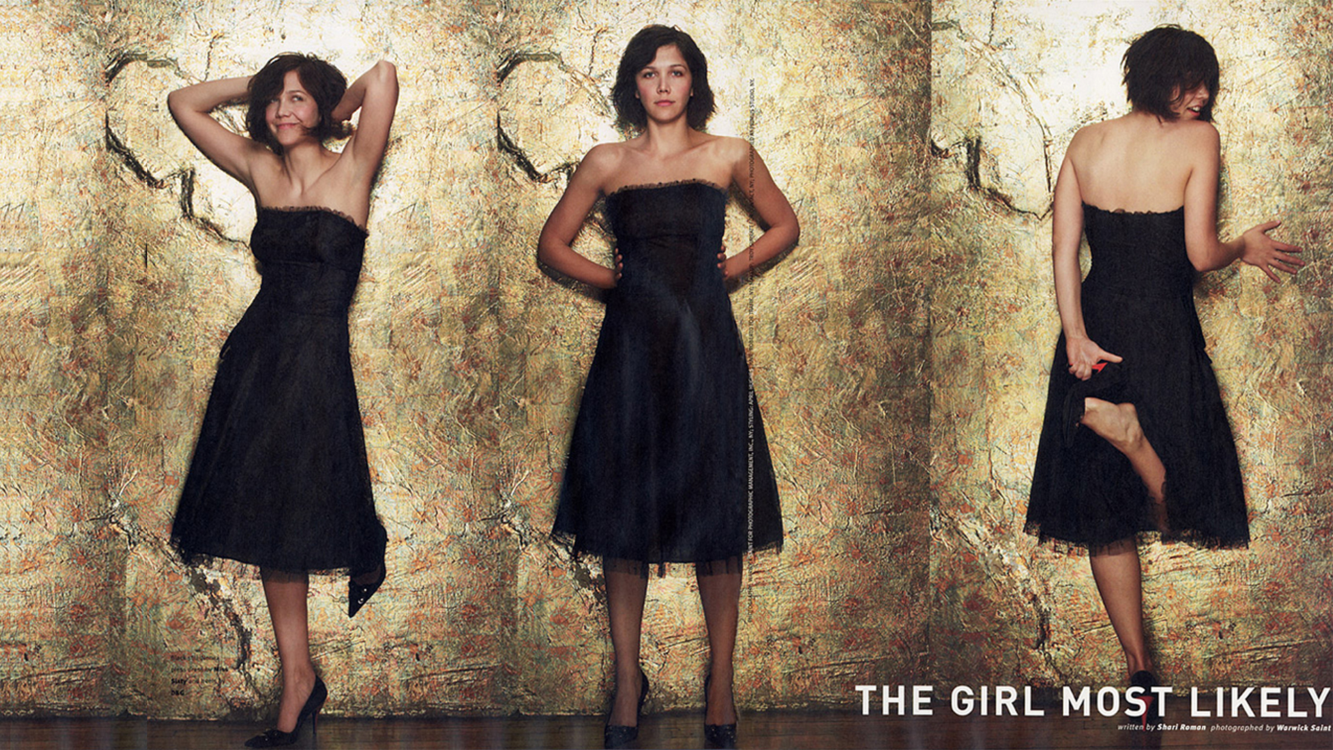 Description: A woman in a black dress posing for a picture with her hands on her head and her right hand on her head.