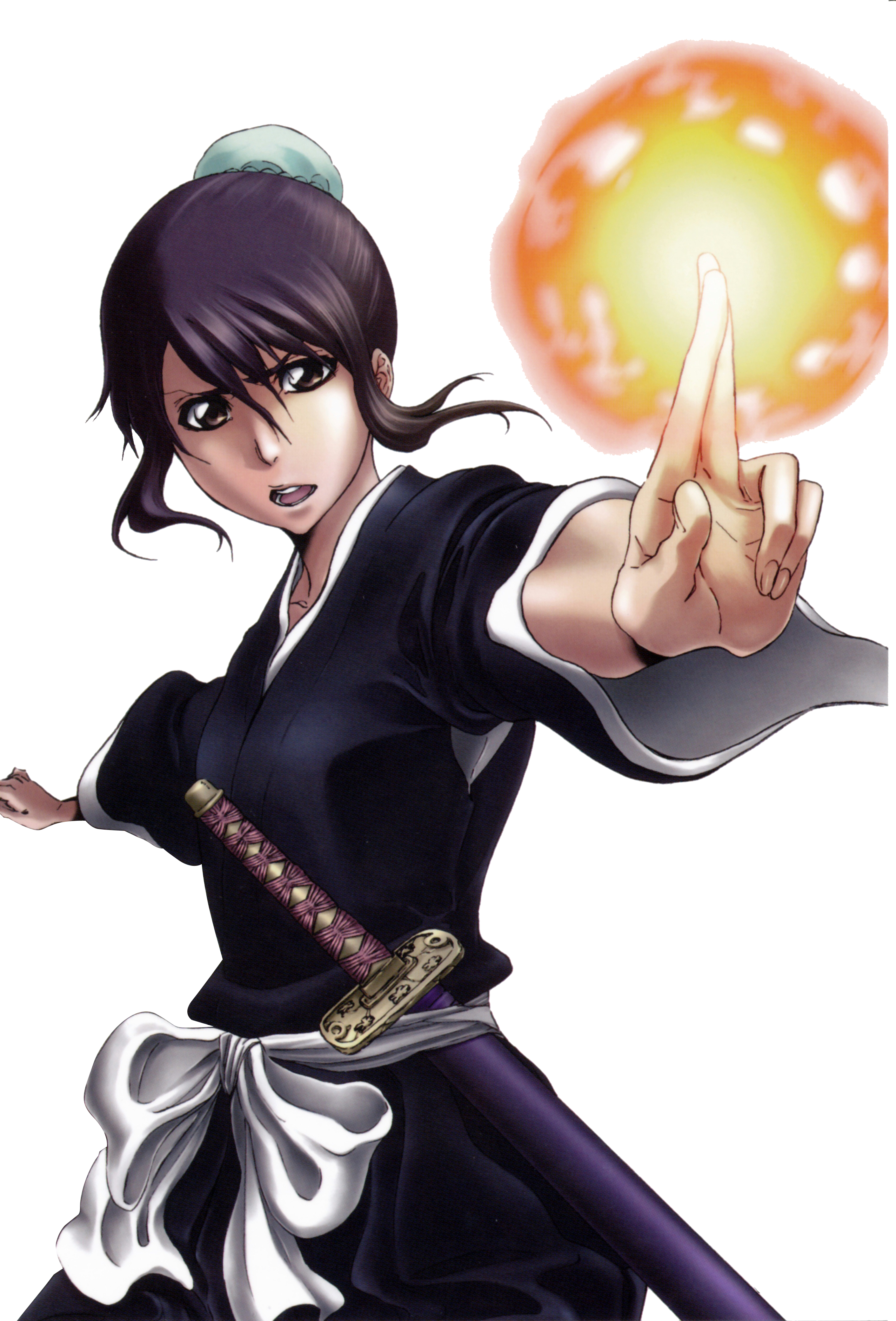 Description: A woman in a black dress holding a sword and pointing at the sun with her finger in the air.