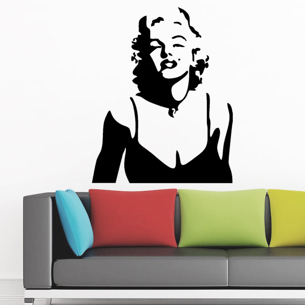Description: A wall decal of a woman with a black dress on it's face and a black background.