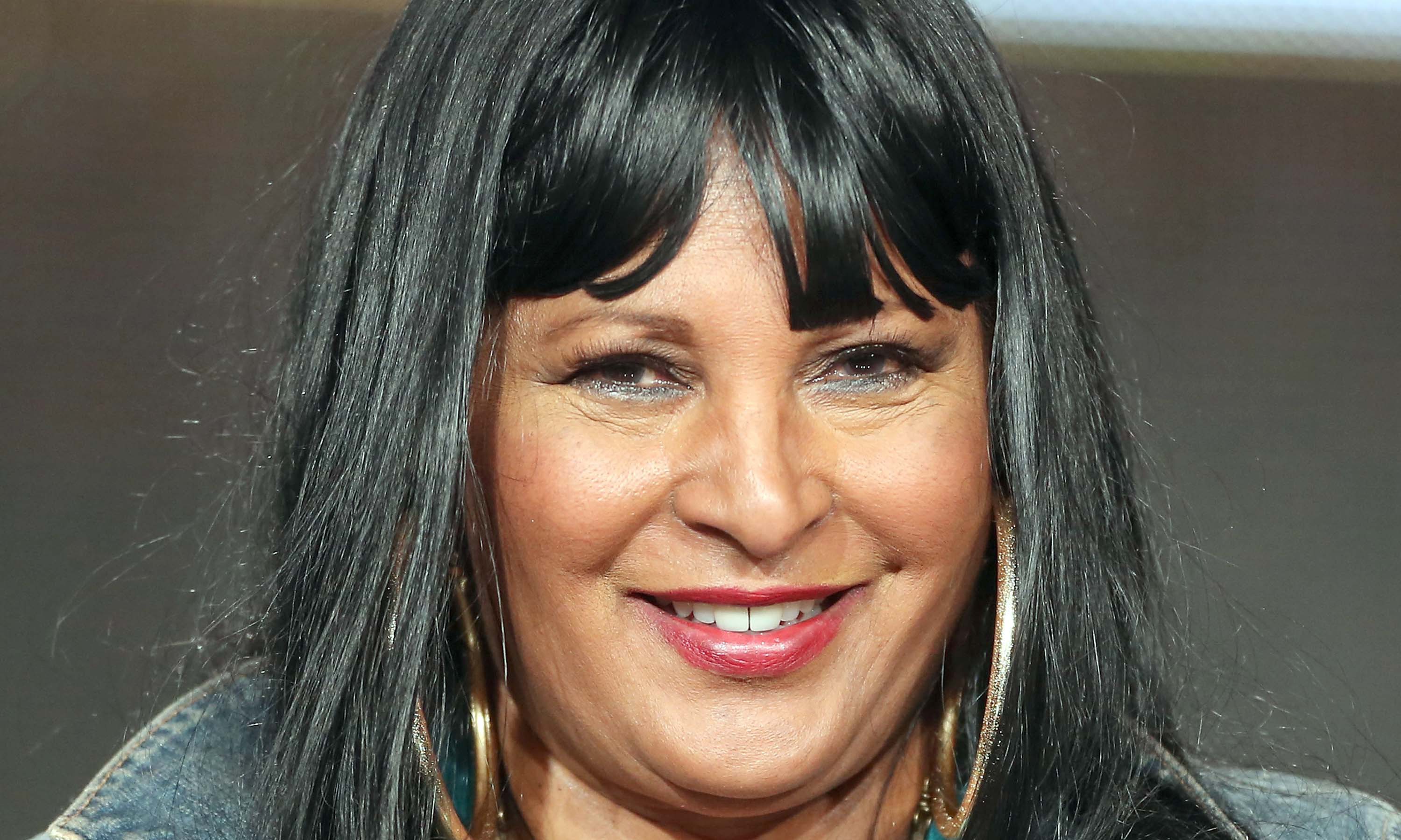 Description: A woman with black hair and a denim jacket smiling at the camera with a smile on her face and a blue shirt on.