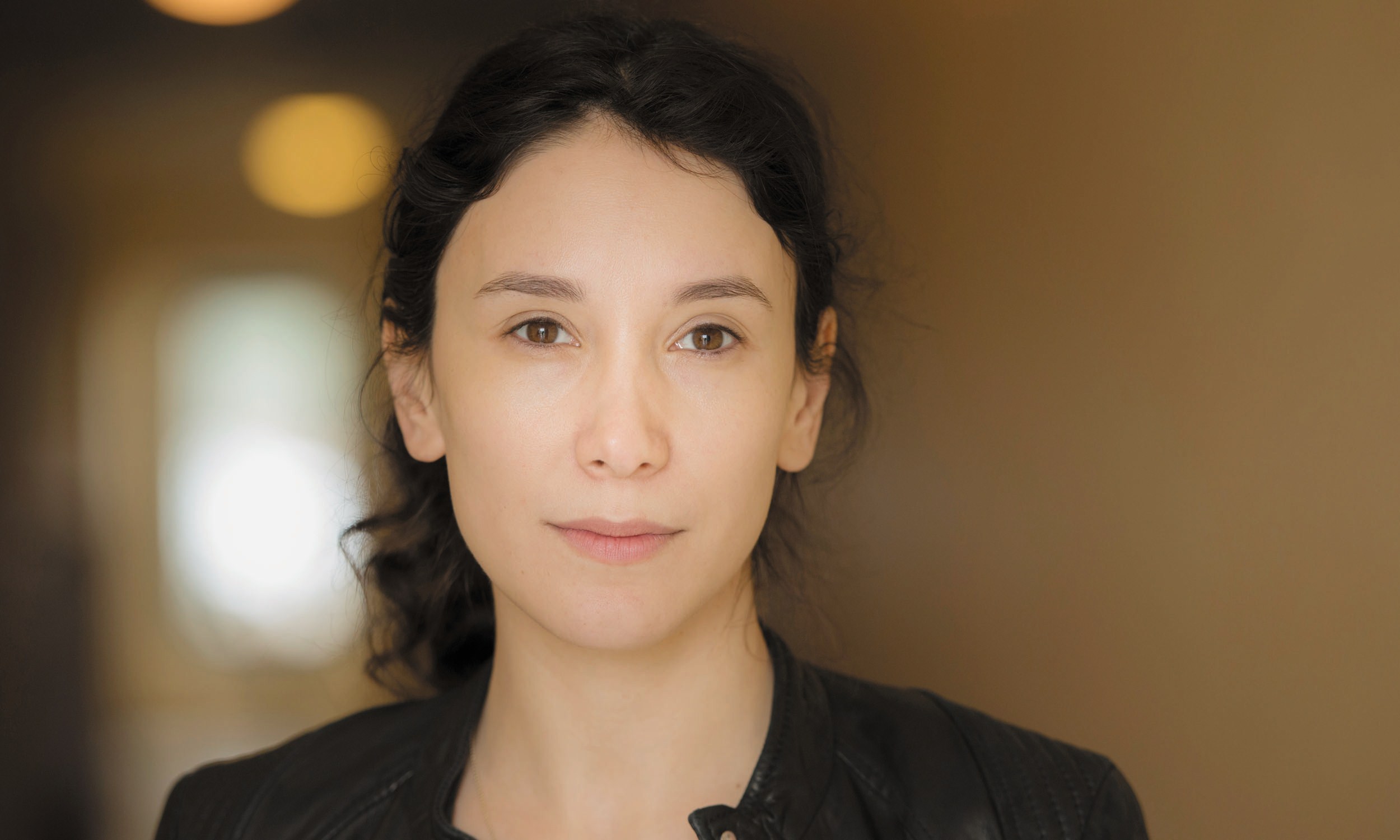 Description: A woman with a black jacket and a black shirt is looking at the camera and is smiling at the camera.
