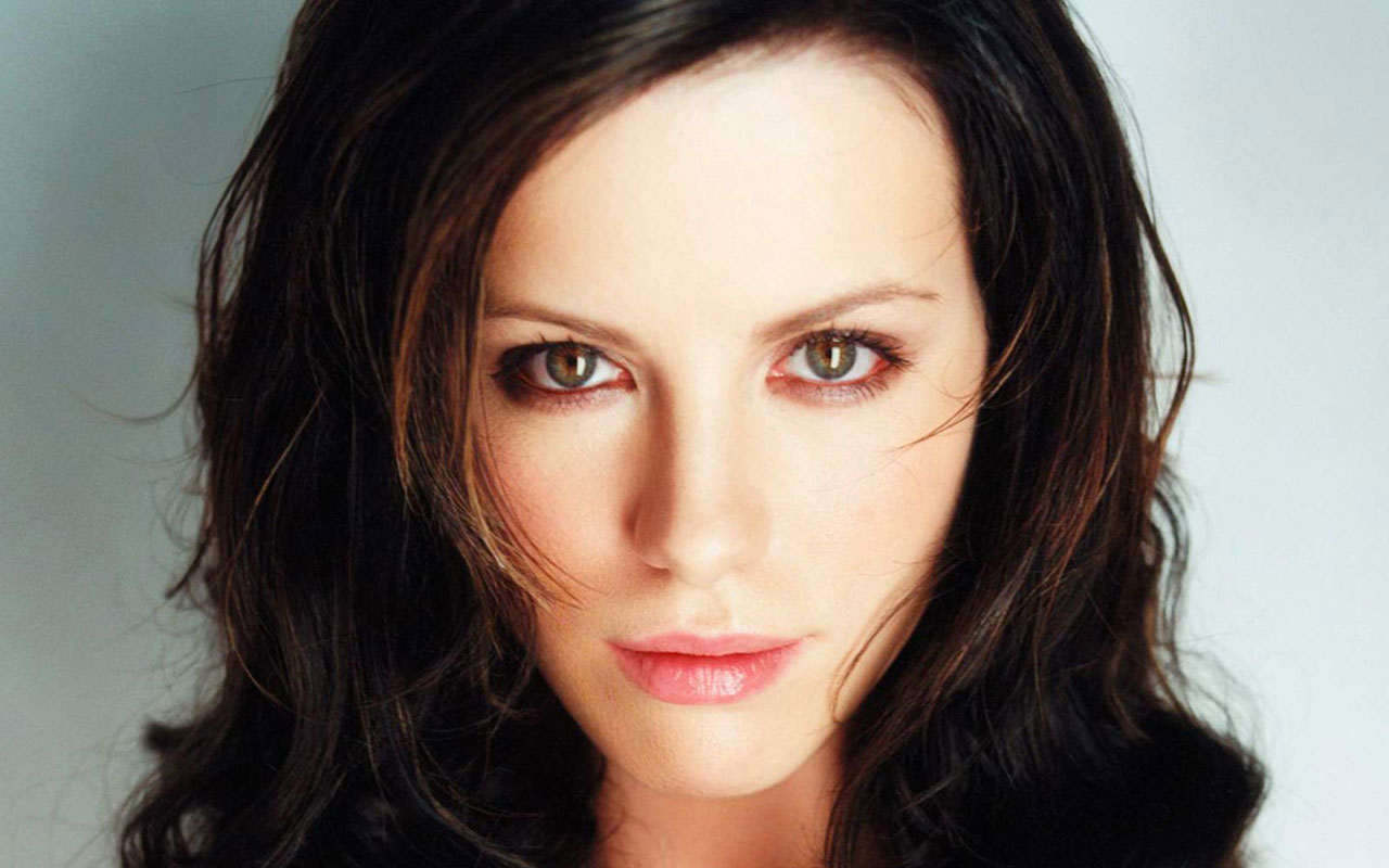 Description: A woman with long hair and a black shirt on posing for a picture with a white background and a white wall.