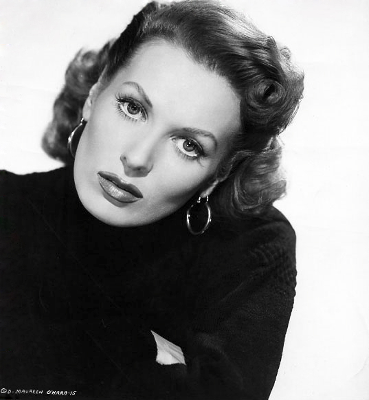 Description: A woman with a black sweater and earrings on her head and her arms crossed and her eyes closed.