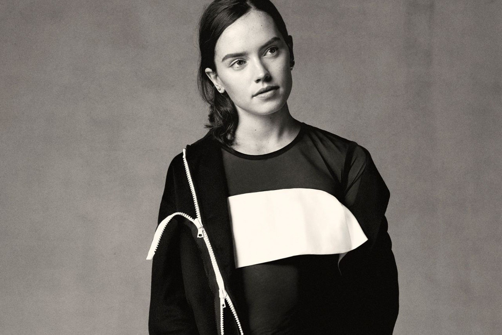 Description: A woman in a black and white dress holding a purse and posing for a picture in a black and white photo.