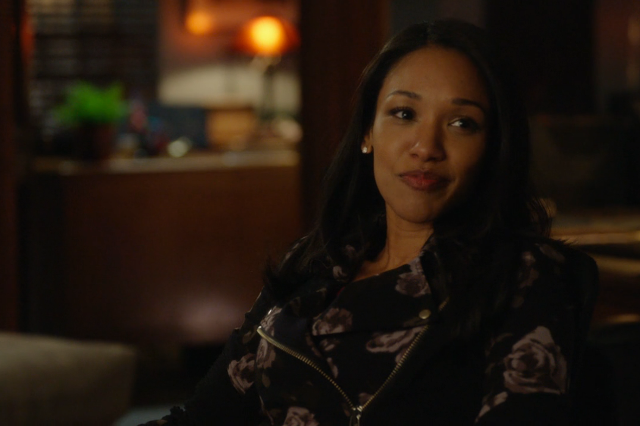 Description: A woman in a black and white floral shirt is looking at the camera and is looking at the camera.