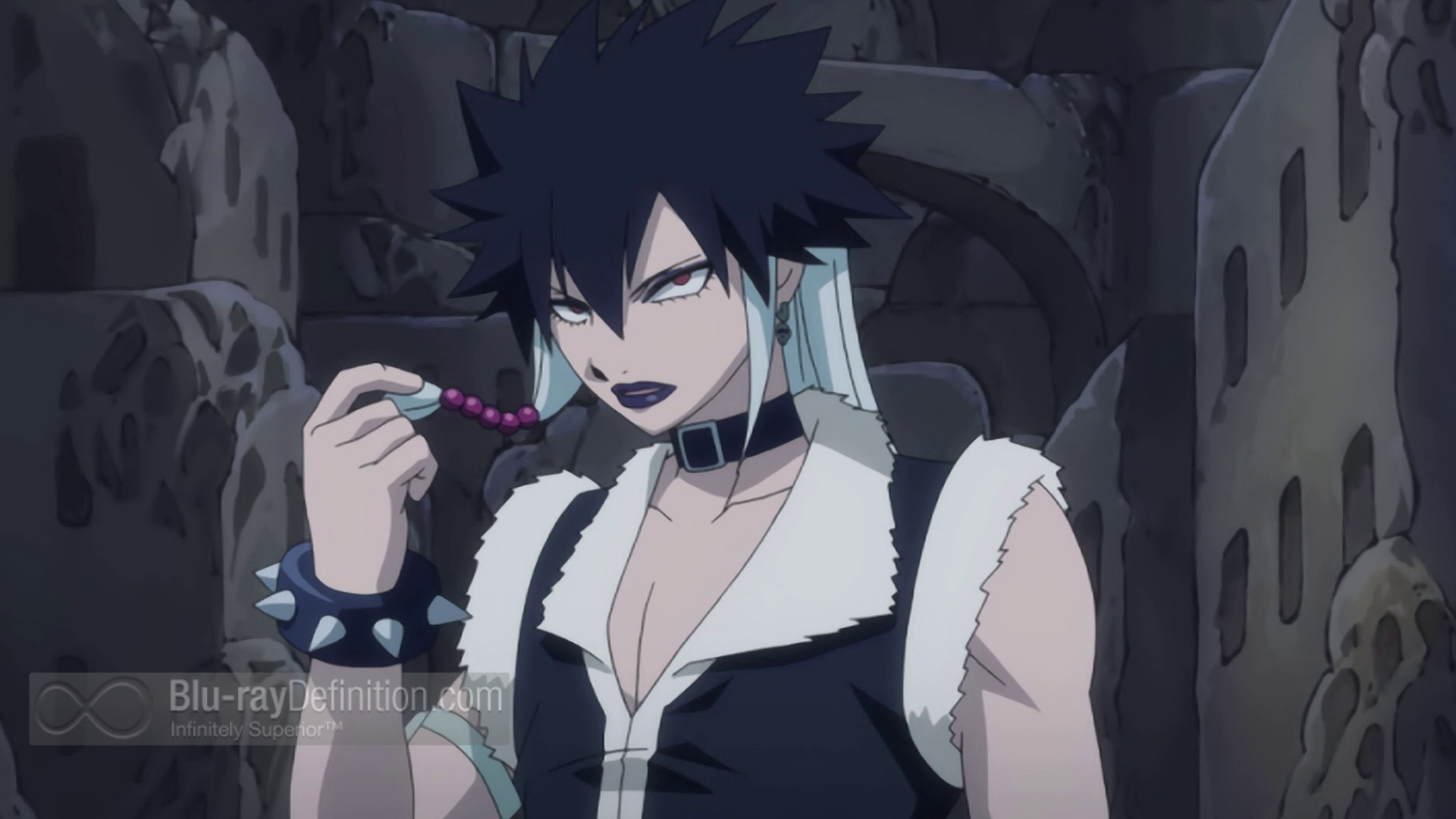 Description: A woman with black hair and a white shirt is smoking a cigarette in a cave with rocks and a stone wall.
