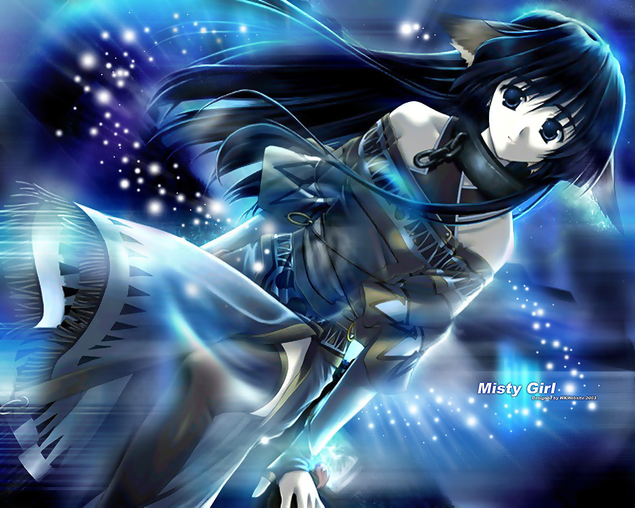 Description: A woman in a blue dress with long hair and a sword in her hand.