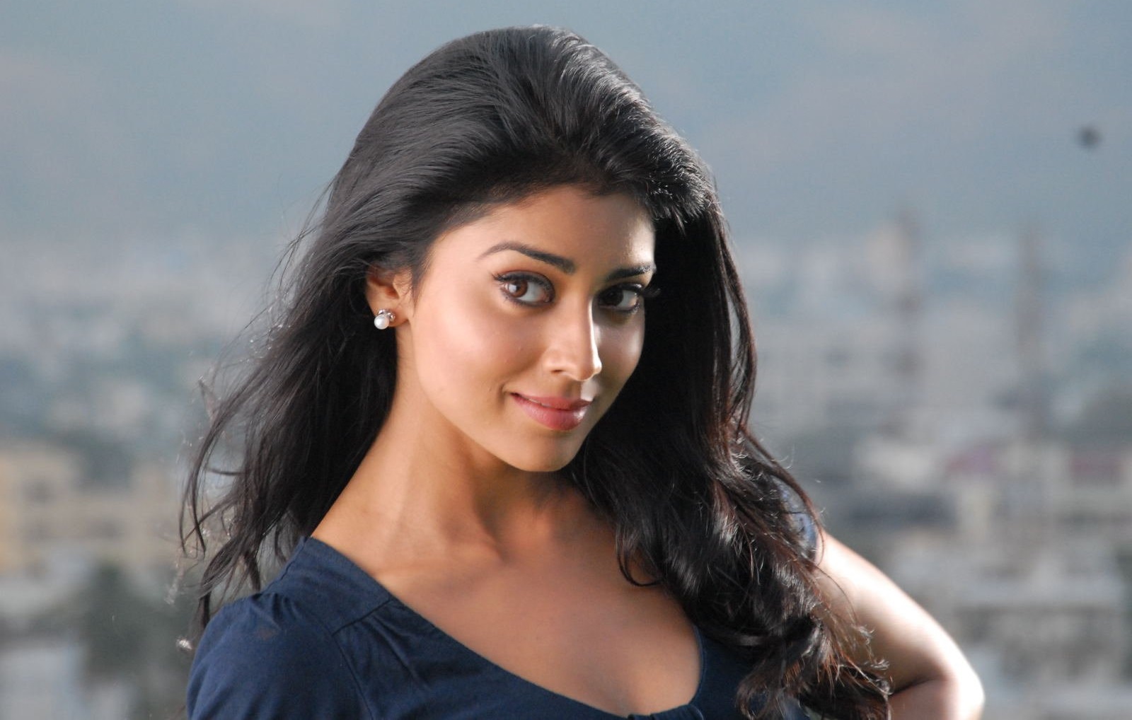 Description: A woman with long hair and a blue shirt posing for a picture with a city in the background and a bird flying overhead.