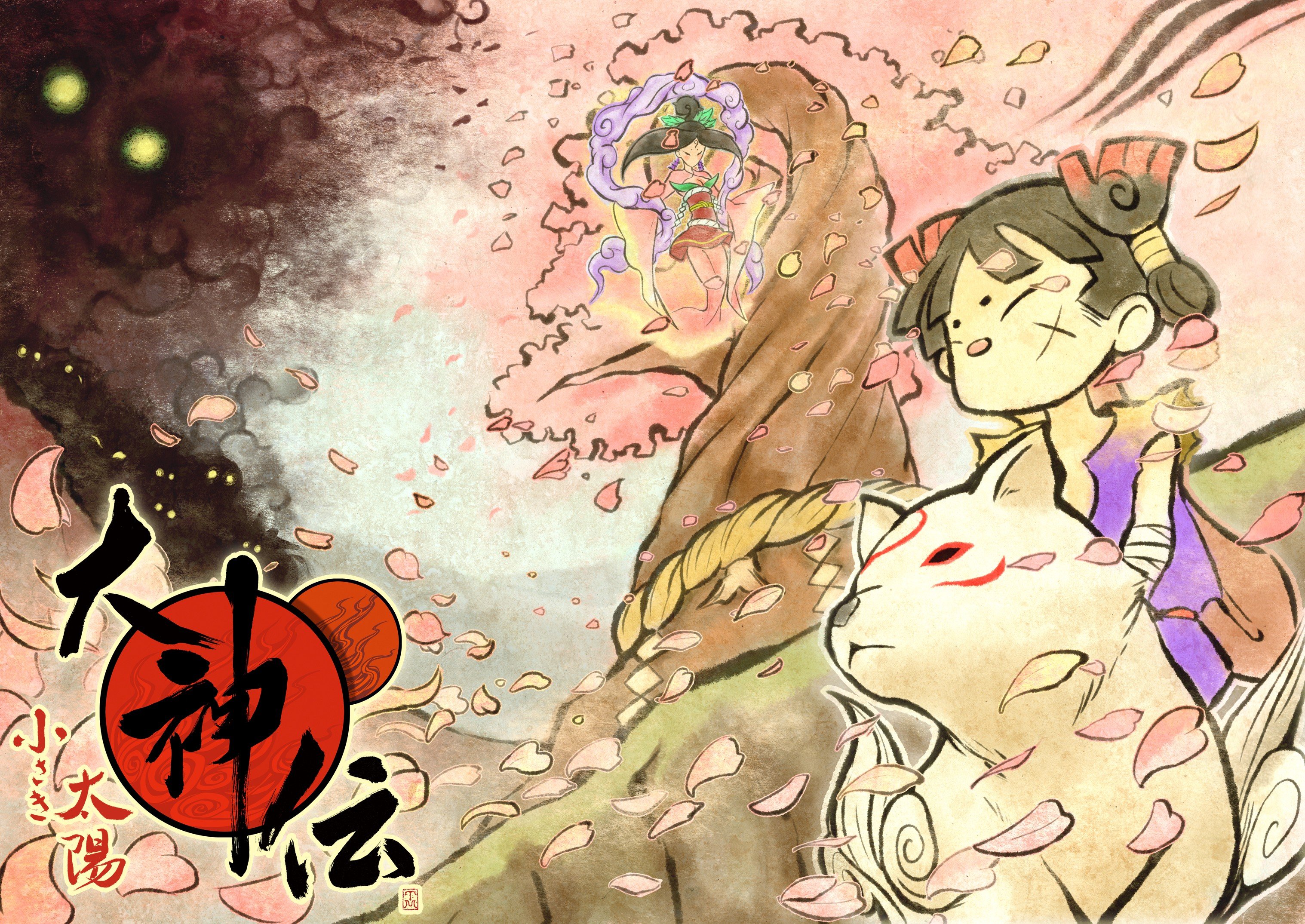 Description: A painting of a woman and a cat with a dragon in the background and a demon in the foreground.
