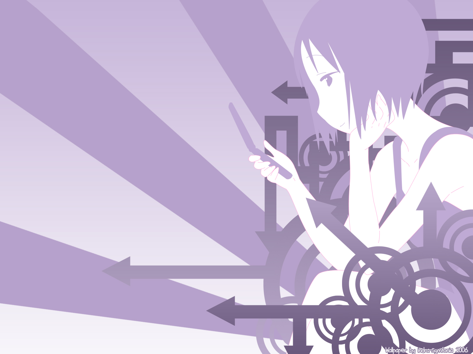 Description: A woman holding a cell phone in her hand and looking at it with a purple background and arrows pointing up.