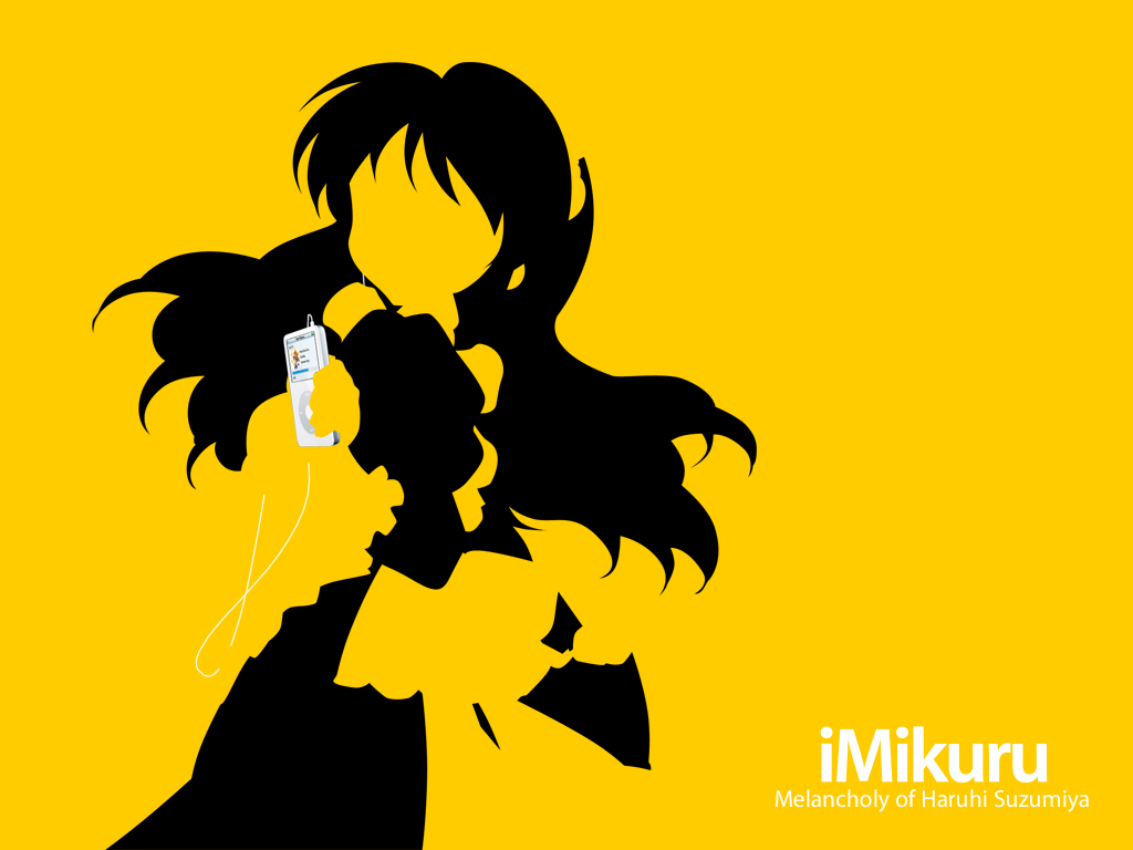 Description: A woman holding a cell phone in her hand and a yellow background with a black silhouette of a woman.