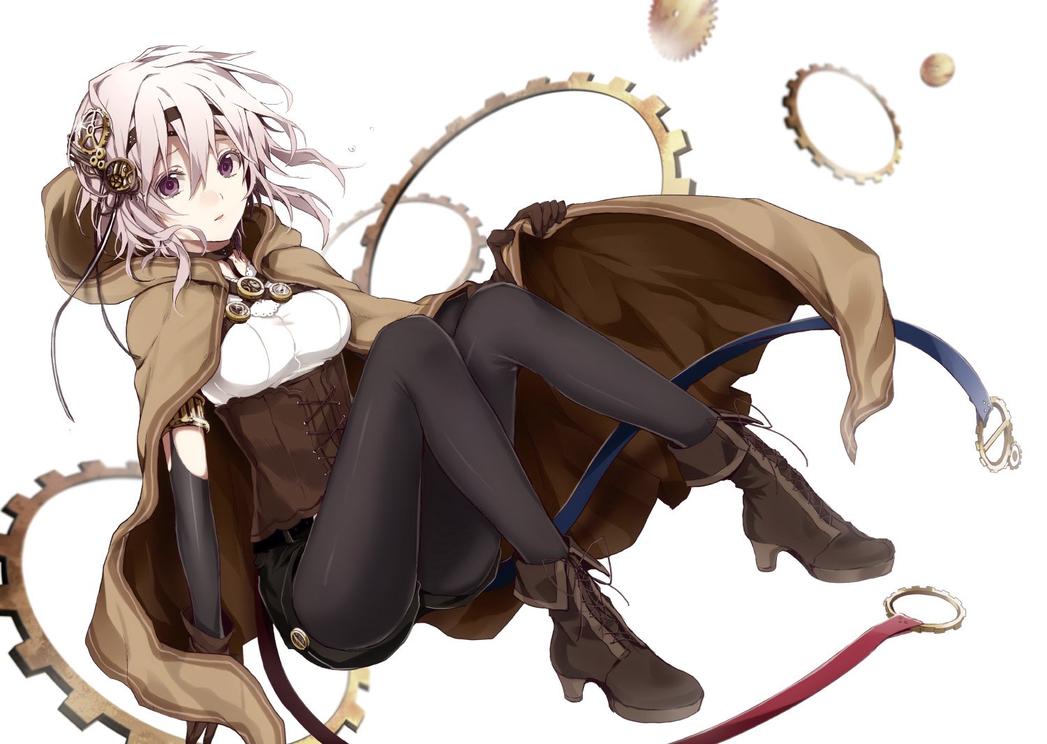 Description: A woman sitting on top of a chair with a whip in her hand and a hat on her head.