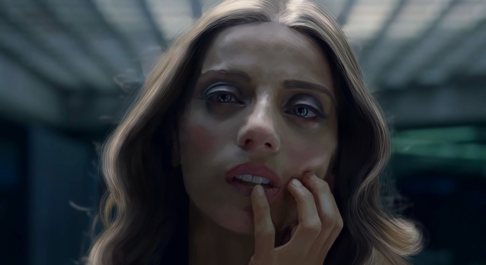 Description: A woman with a cigarette in her mouth and a cigarette in her mouth.