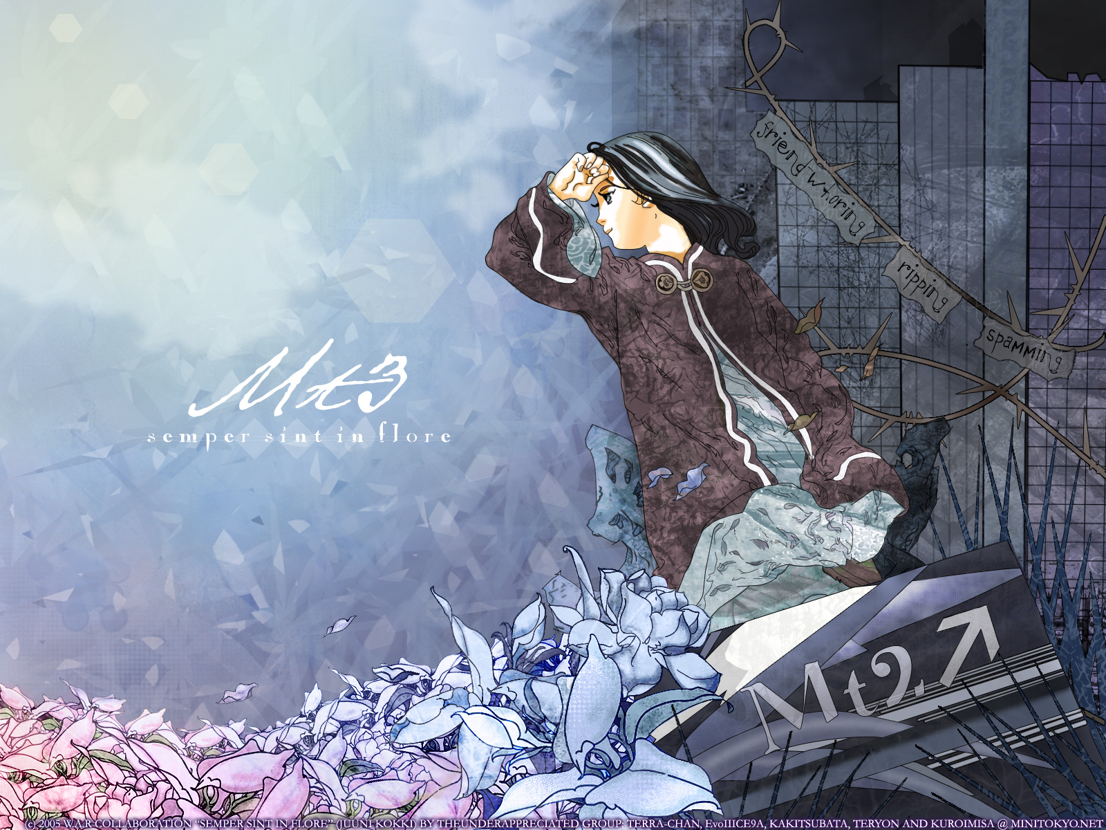 Description: A woman sitting on a bench with a clock in her hand and flowers in the foreground and a building in the background.
