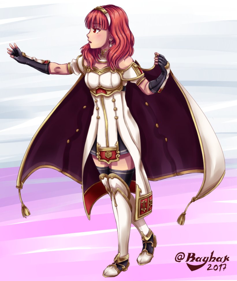 Description: A woman dressed in a costume with a cape and gloves on her shoulders and a pink background with a white background.