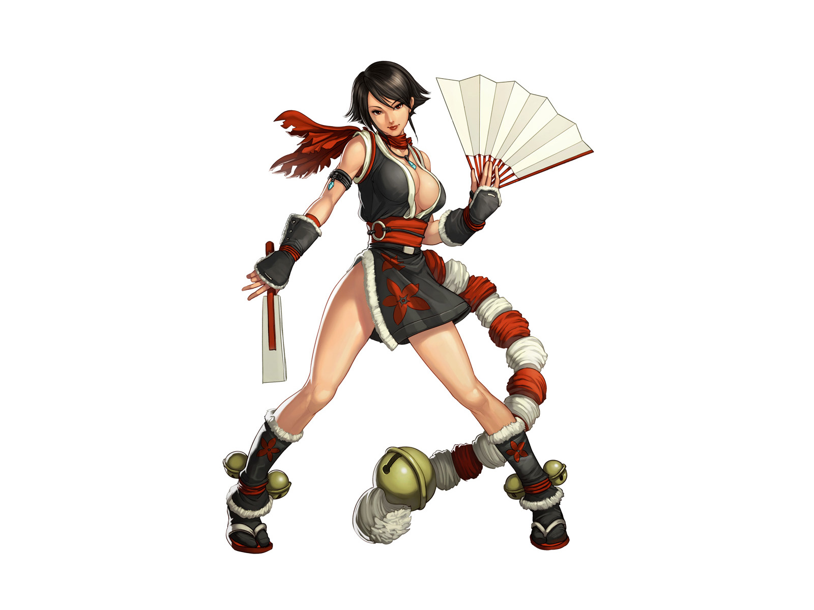 Description: A woman in a costume holding a fan and a ball with a ball on it's feet and a baseball bat.